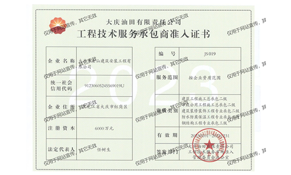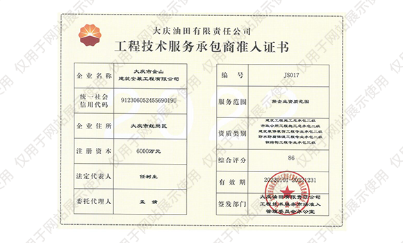 公司簡介企業(yè)文化榮譽(yù)資質(zhì) 信用評價 三體系質(zhì)量 三體系職業(yè) 三體系環(huán)境 金山建筑**生產(chǎn)許可證 建筑二級資質(zhì) 鋼結(jié)構(gòu)三級 2023年油田入網(wǎng)證 營業(yè)執(zhí)照 工程技術(shù)服務(wù)合格供方證書 職業(yè)健康**管理體系認(rèn)證證書 質(zhì)量管理體系認(rèn)證證書 首頁上一頁12下一頁末頁